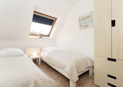 Schlafzimmer 2: 2 Einzelbetten (je 90×200 cm), Verdunkelung: Rollo, Platz für Babybett