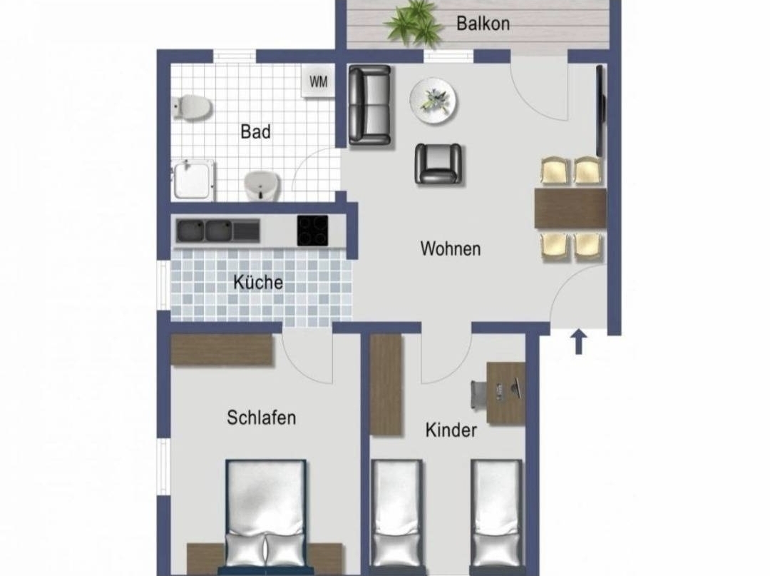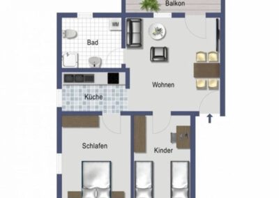 Großzügige 3-Zimmer-Ferienwohnung in Dahme mit 50 m² Wohnfläche und Balkon für bis zu 4 Personen.
